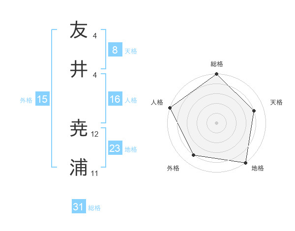 友井 尭浦さんを姓名の画数から五運を鑑定