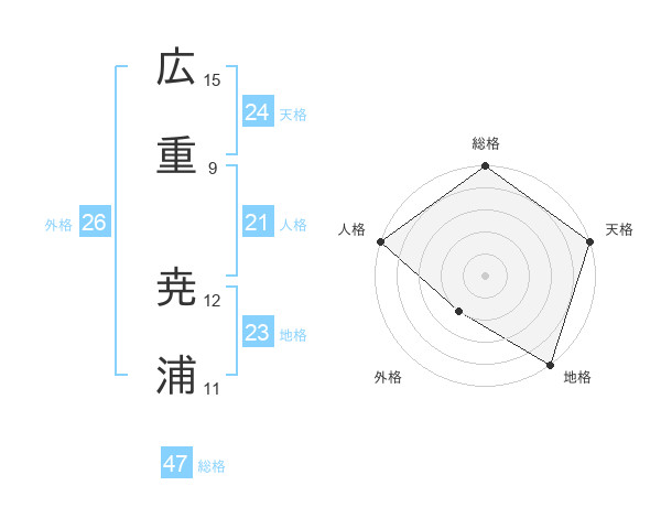 広重 尭浦さんの総格は47画の5点!