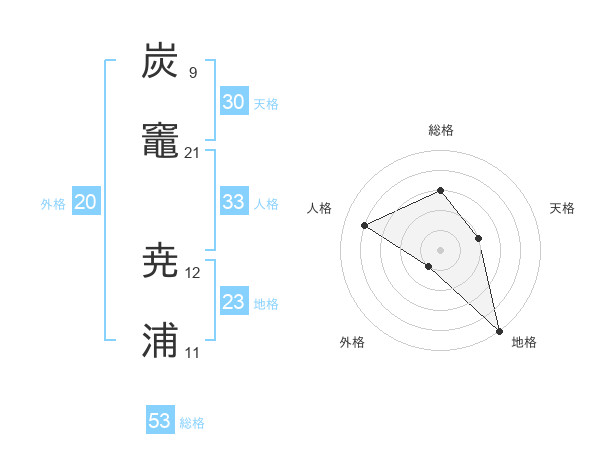 炭竈 尭浦さんを姓名の画数から五運を鑑定