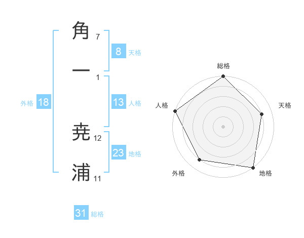 角一 尭浦さんの総格は31画の5点!
