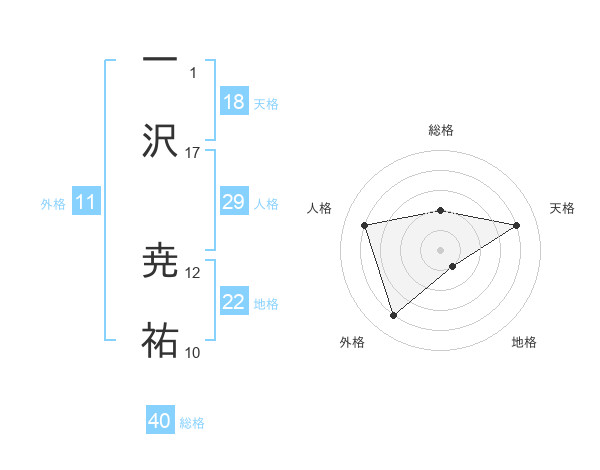 一沢 尭祐さんの地格は22画の1点!