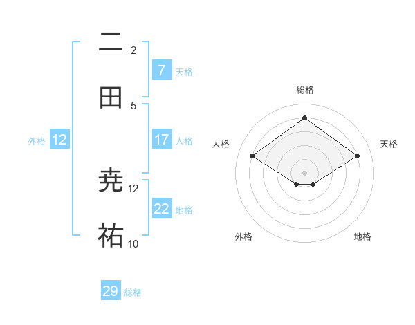二田 尭祐さんの総格は29画の4点!