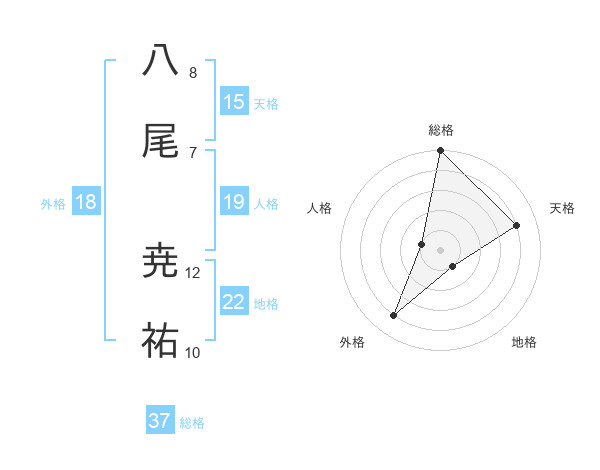 八尾 尭祐さんを姓名の画数から五運を鑑定