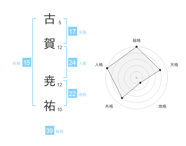 古賀 尭祐さんを姓名の画数から五運を鑑定