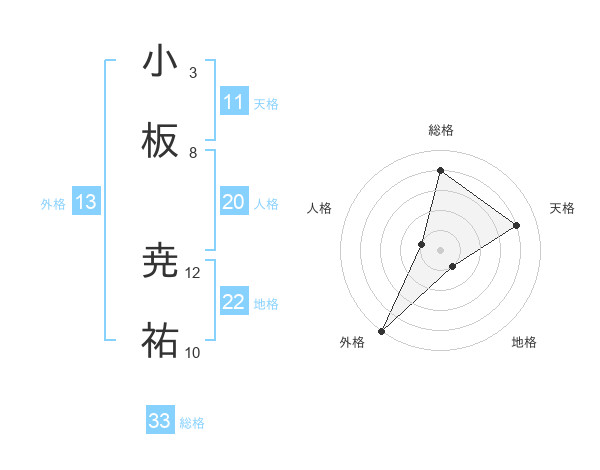 小板 尭祐さんを姓名の画数から五運を鑑定