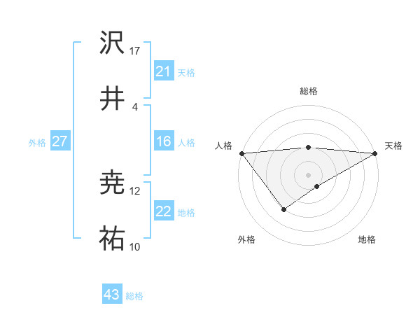 沢井 尭祐さんを姓名の画数から五運を鑑定
