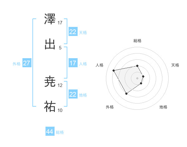 澤出 尭祐さんの地格は22画の1点!