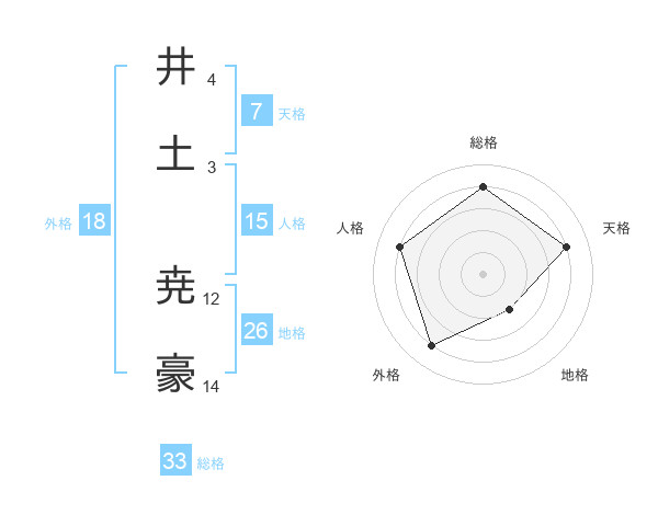 井土 尭豪さんの総格は33画の4点!