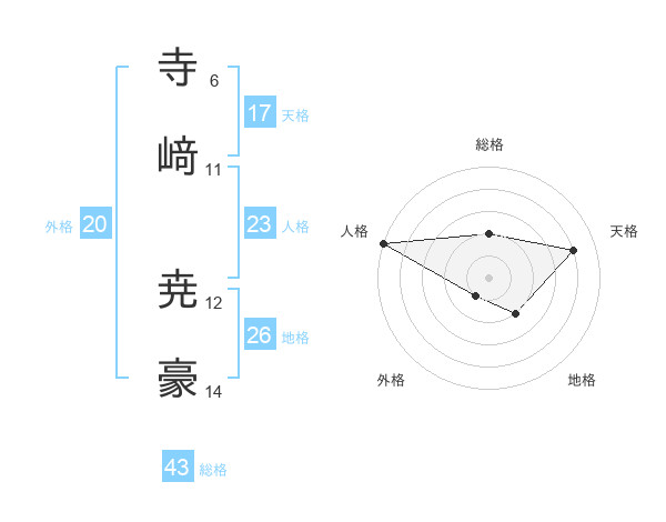 寺﨑 尭豪さんを姓名の画数から五運を鑑定