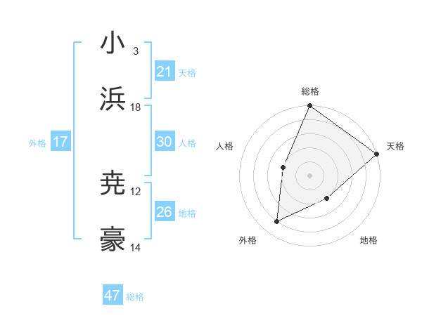 小浜 尭豪さんを姓名の画数から五運を鑑定
