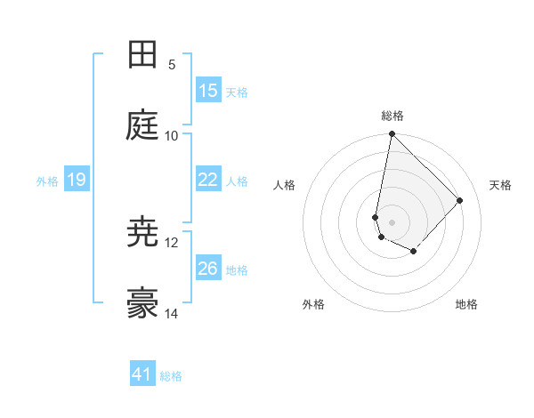 田庭 尭豪さんを姓名の画数から五運を鑑定
