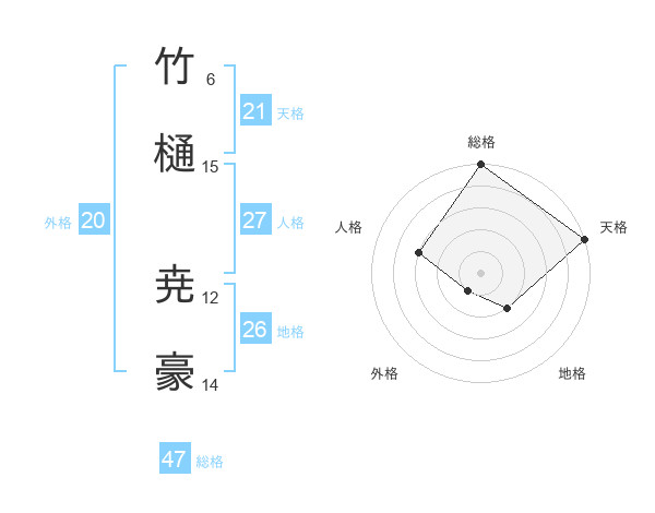 竹樋 尭豪さんを姓名の画数から五運を鑑定