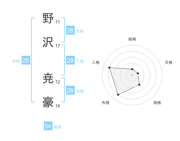 野沢 尭豪さんの外格は25画の4点!