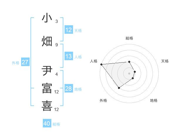 小畑 尹富喜さんの天格は12画の1点!