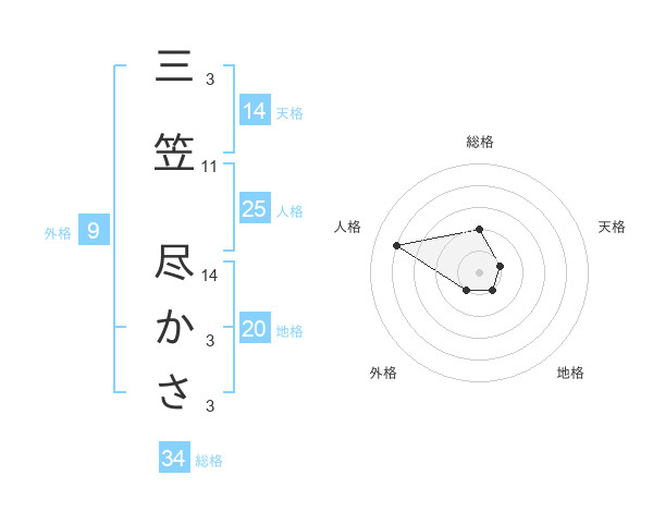 三笠 尽かささんを姓名の画数から五運を鑑定