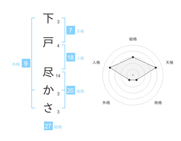 下戸 尽かささんを姓名の画数から五運を鑑定
