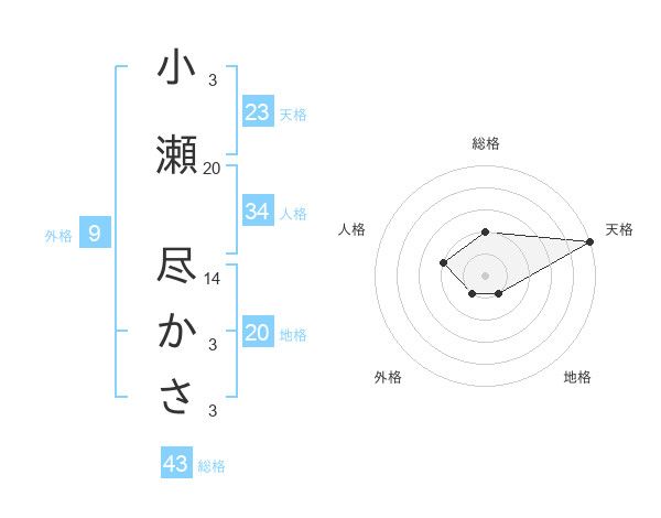 小瀬 尽かささんを姓名の画数から五運を鑑定