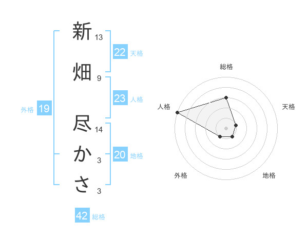 新畑 尽かささんを姓名の画数から五運を鑑定
