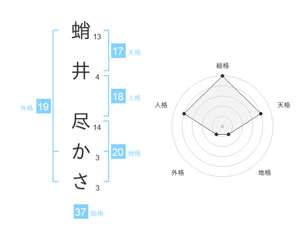 蛸井 尽かささんの天格は17画の4点!