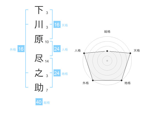 下川原 尽之助さんを姓名の画数から五運を鑑定