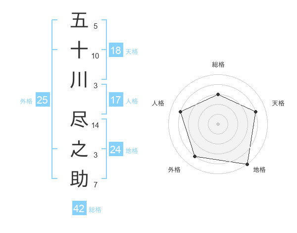 五十川 尽之助さんを姓名の画数から五運を鑑定