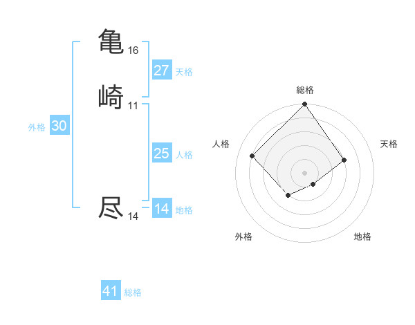 亀崎 尽さんの総格は41画の5点!