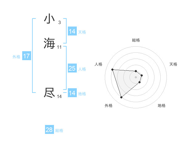 小海 尽さんの総格は28画の1点!