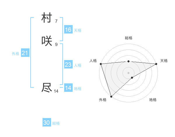村咲 尽さんの外格は21画の5点!