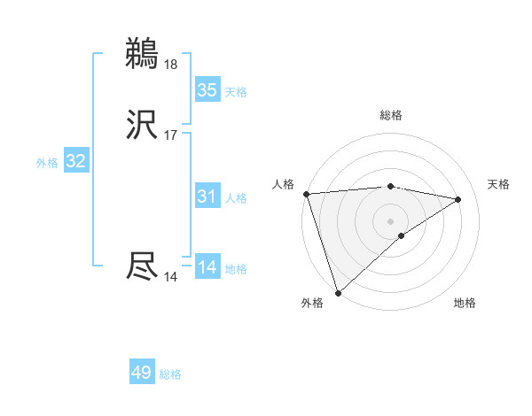 鵜沢 尽さんを姓名の画数から五運を鑑定