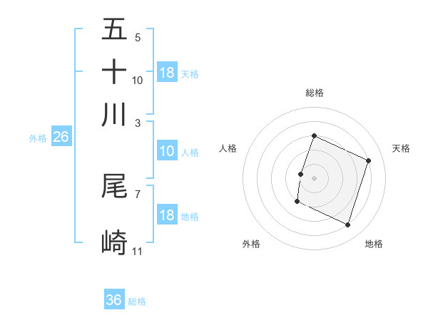 五十川 尾崎さんを姓名の画数から五運を鑑定