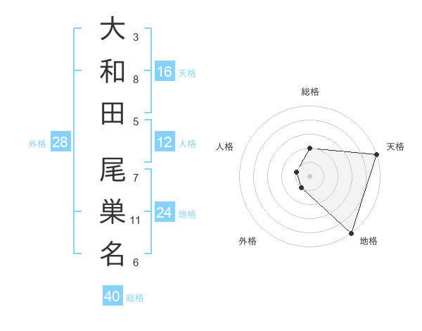 大和田 尾巣名さんを姓名の画数から五運を鑑定