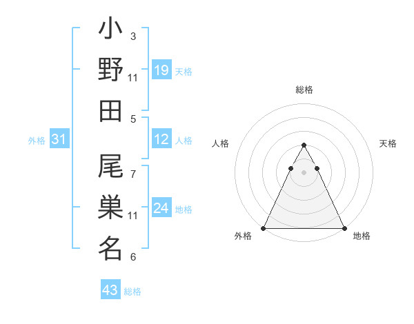 小野田 尾巣名さんを姓名の画数から五運を鑑定