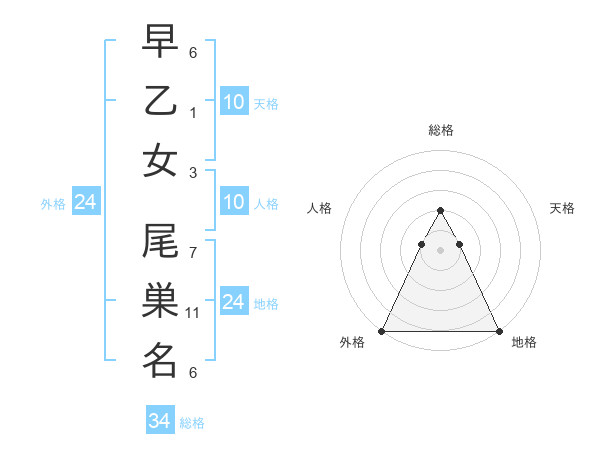 早乙女 尾巣名さんを姓名の画数から五運を鑑定