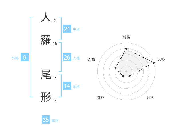 人羅 尾形さんの天格は21画の5点!