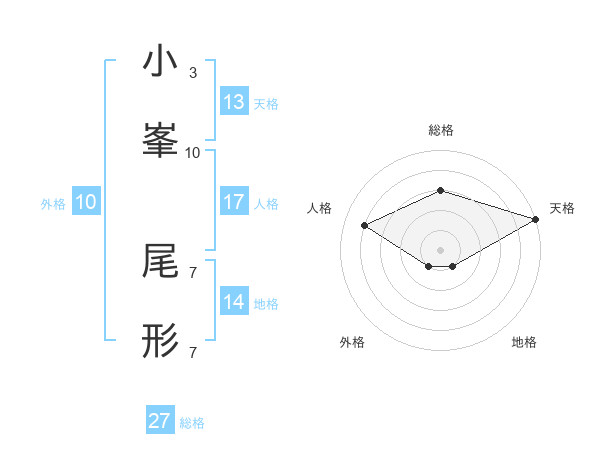 小峯 尾形さんの天格は13画の5点!