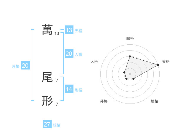 萬 尾形さんの総格は27画の3点!