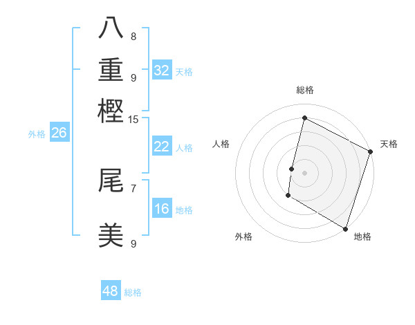 八重樫 尾美さんを姓名の画数から五運を鑑定