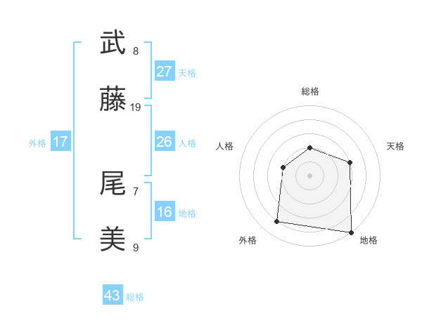 武藤 尾美さんの総格は43画の2点!