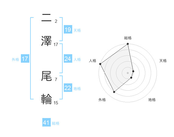 二澤 尾輪さんの外格は17画の4点!