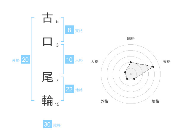 古口 尾輪さんの天格は8画の4点!