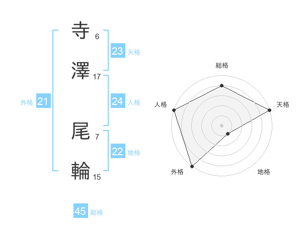 寺澤 尾輪さんの外格は21画の5点!