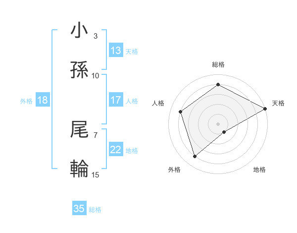 小孫 尾輪さんの天格は13画の5点!