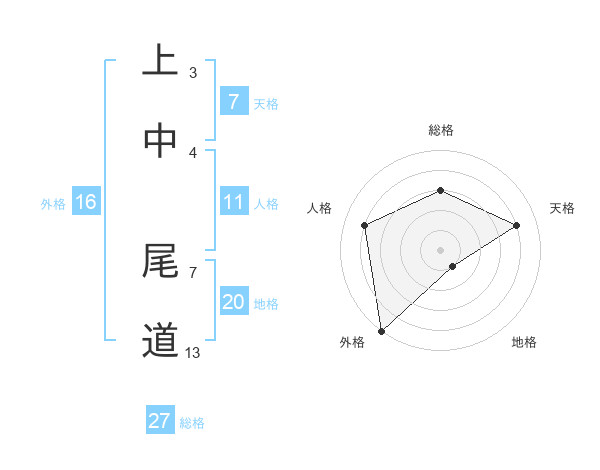 上中 尾道さんの総格は27画の3点!