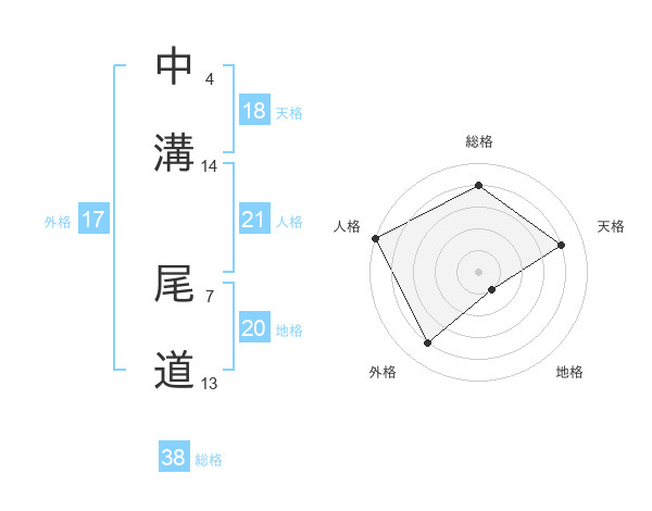 中溝 尾道さんの総格は38画の4点!