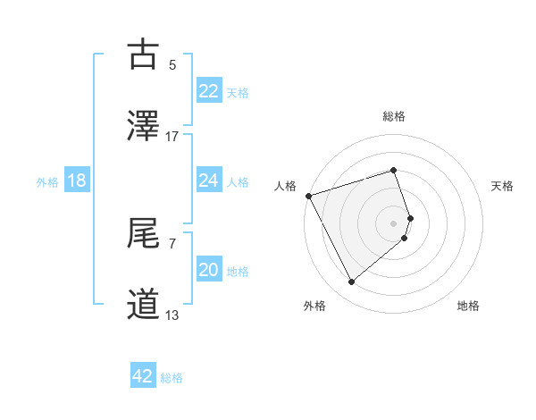 古澤 尾道さんを姓名の画数から五運を鑑定