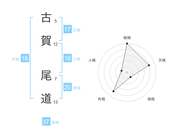 古賀 尾道さんを姓名の画数から五運を鑑定