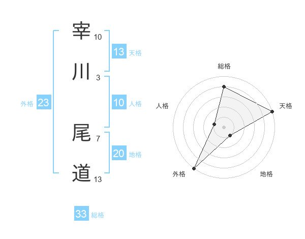 宰川 尾道さんの天格は13画の5点!