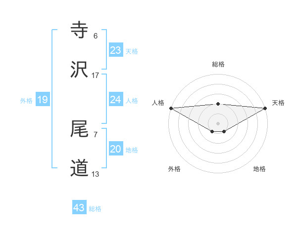 寺沢 尾道さんを姓名の画数から五運を鑑定