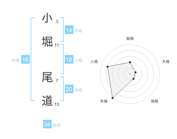 小堀 尾道さんを姓名の画数から五運を鑑定