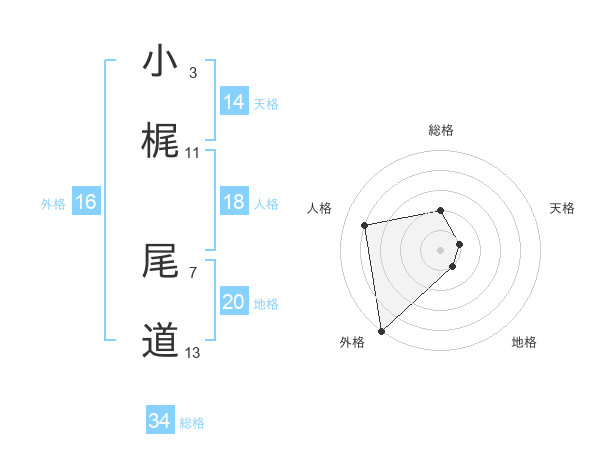 小梶 尾道さんを姓名の画数から五運を鑑定